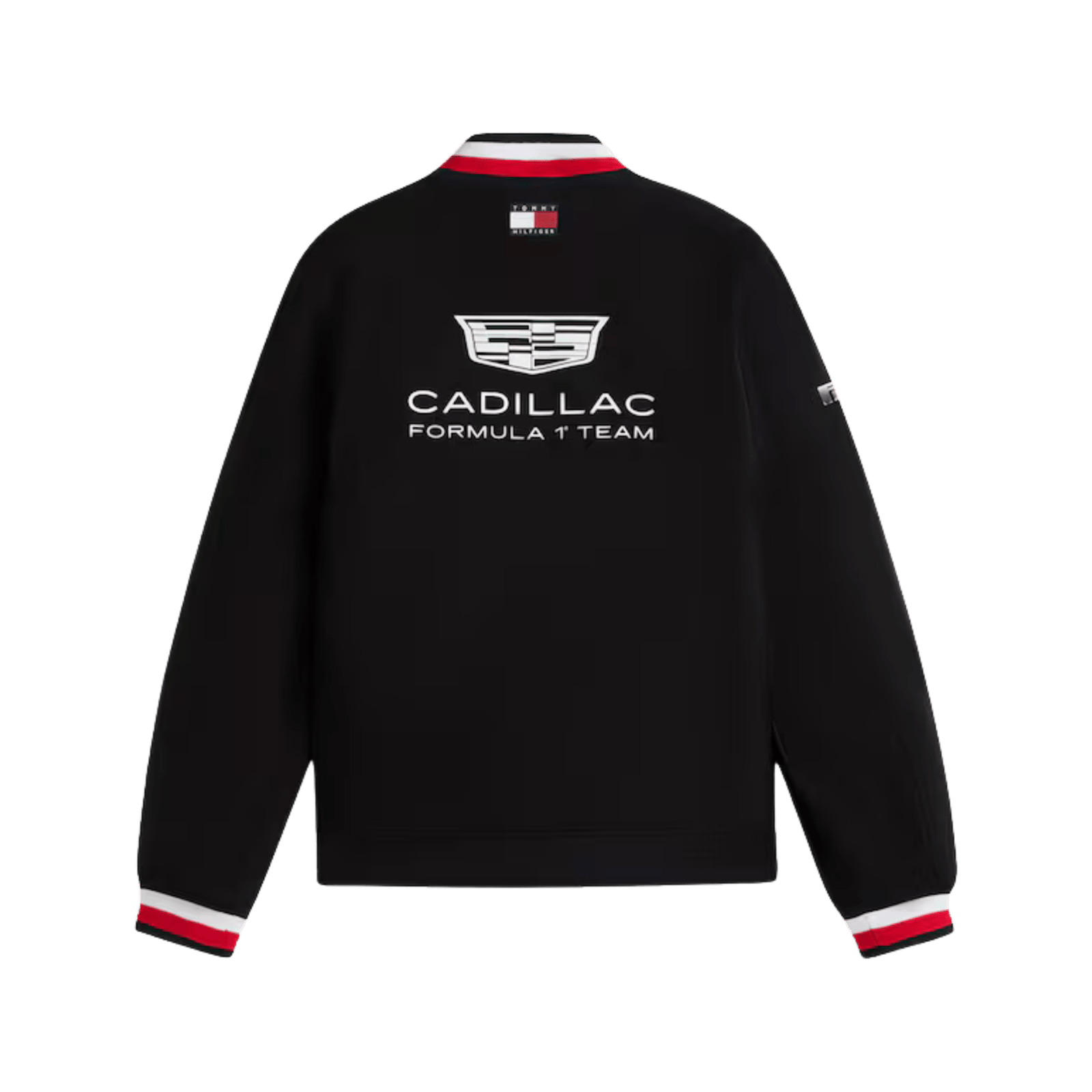 Con un diseño en color negro y detalles en rojo, blanco y azul en cuello y puños, esta chamarra destaca por su elegancia discreta y su presencia poderosa. Al frente incorpora los logos oficiales de Cadillac F1 Team y Tommy Hilfiger, mientras que en la manga se suma el branding de Pirelli, reafirmando su autenticidad y carácter racing.