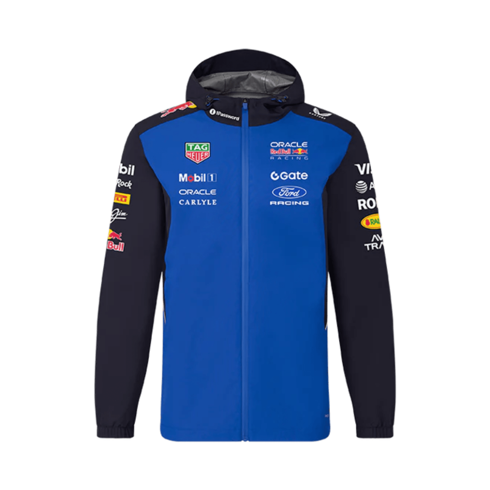 Chamarra de Lluvia Redbull 2026 con un diseño oficial inspirado en el equipo y los colores icónicos que dominan la parrilla. Incorpora los logotipos de los patrocinadores principales al frente y mangas, ofreciendo un look auténtico y deportivo. Ideal para protegerte del clima mientras representas a Red Bull Racing dentro y fuera de la pista durante la temporada 2026 de Fórmula 1.