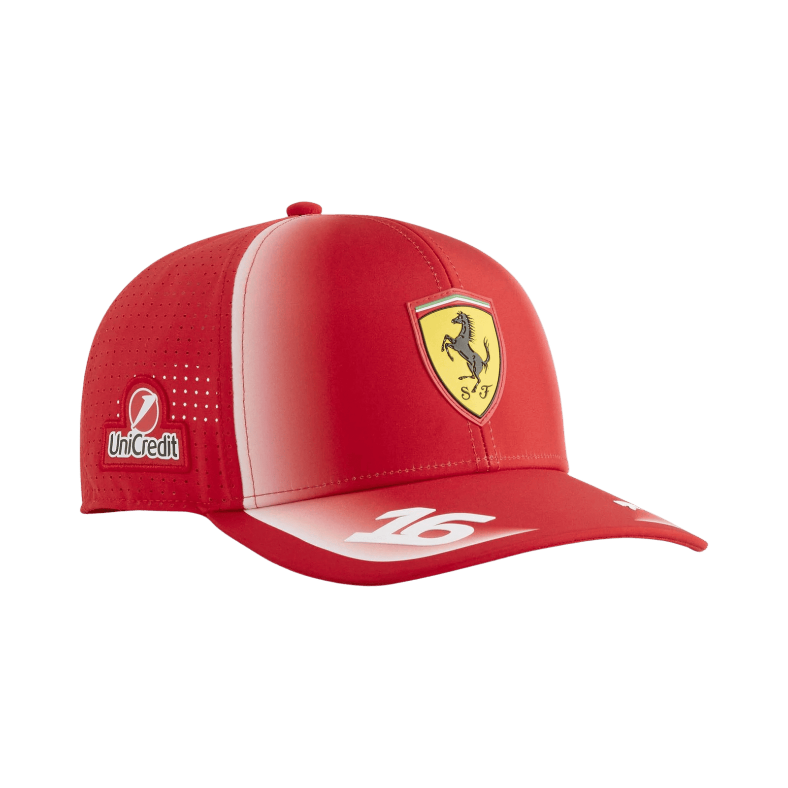 Gorra Ferrari Charles Leclerc 2026 en el clásico rojo Ferrari con un elegante acabado degradado que resalta su diseño premium. Presenta el escudo oficial de la Scuderia al frente y el número 16 en la visera, identificando al piloto monegasco para la temporada 2026 de Fórmula 1. Una pieza ideal para los fans de Leclerc y de Ferrari que quieren llevar la pasión del equipo dentro y fuera de la pista.