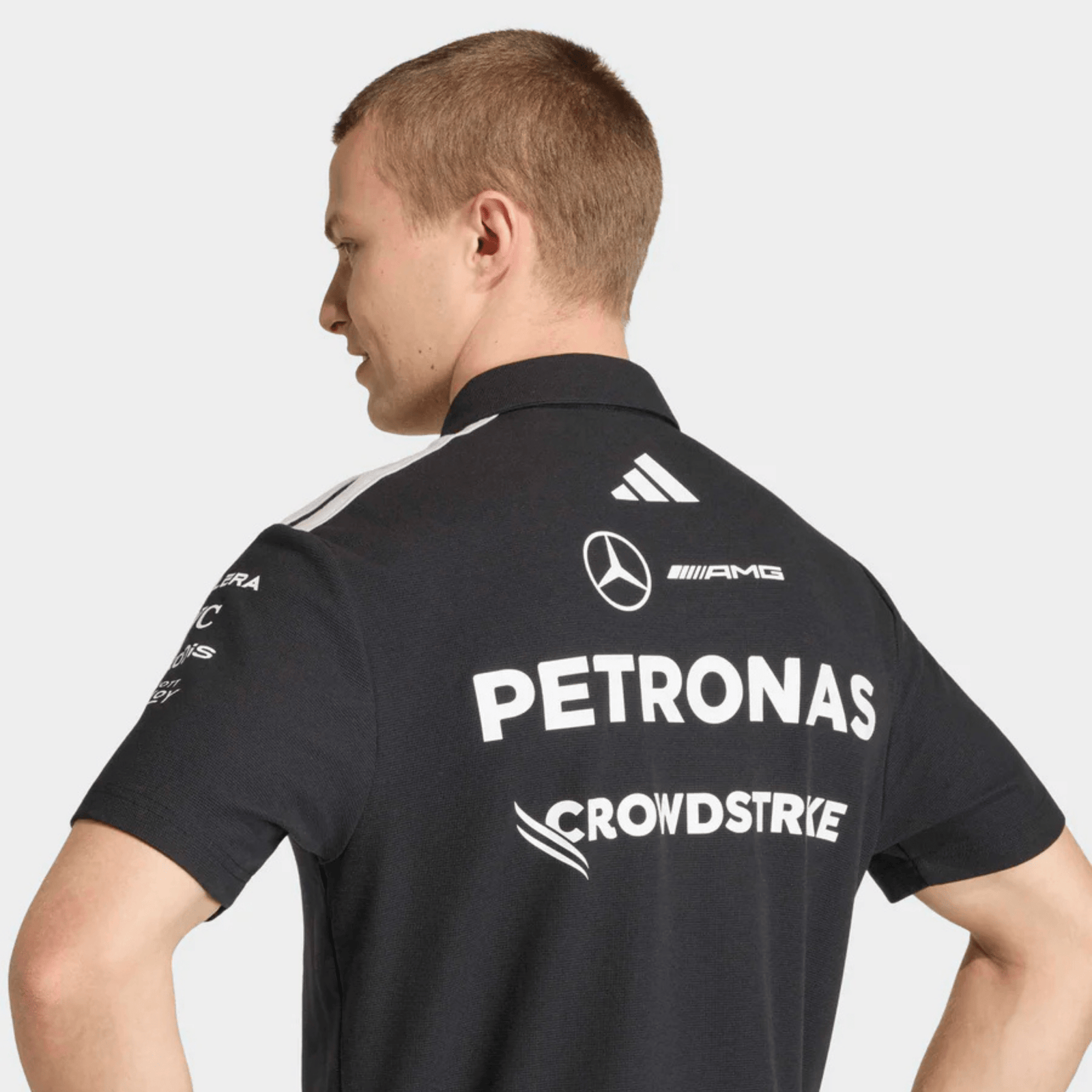 La Polo Mercedes 2026 Negra Piloto ofrece un look elegante y profesional que se ve y se siente bien. Esta polo ofrece un tacto suave y un ajuste cómodo, ideal para los días en la pista o en la oficina.