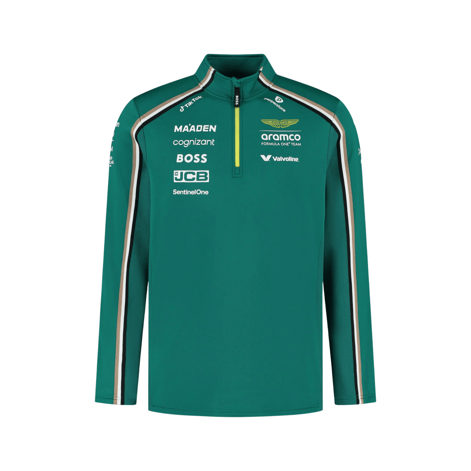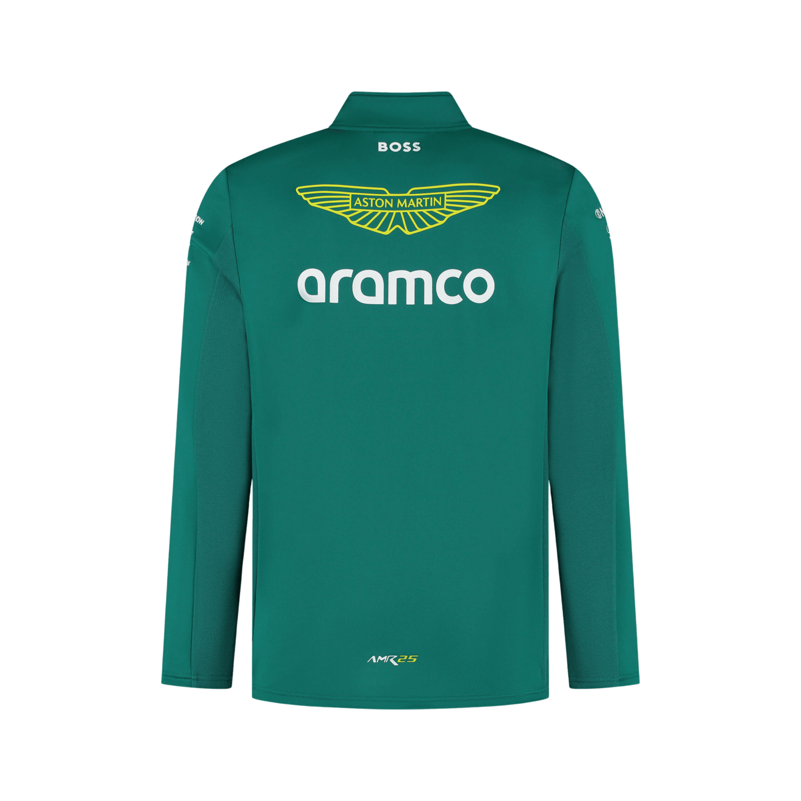 Sweater Aston Martin 2025 en el icónico verde del equipo, con cierre frontal y franjas laterales en contraste que realzan su estética deportiva. Los logotipos oficiales y acabados refinados reflejan la elegancia y el carácter competitivo de Aston Martin, ideal para los fans que buscan un look sofisticado inspirado en la Fórmula 1 dentro y fuera de la pista.
